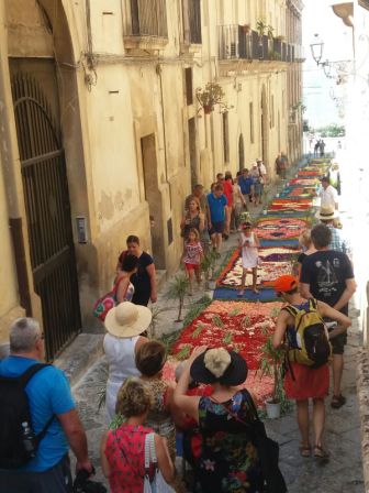 News Siracusa: si è svolta con grande successo di presenze la terza edizione dell’infiorata siracusana, realizzata dai maestri infioratori in via del Collegio in occasione del Corpus Domini.