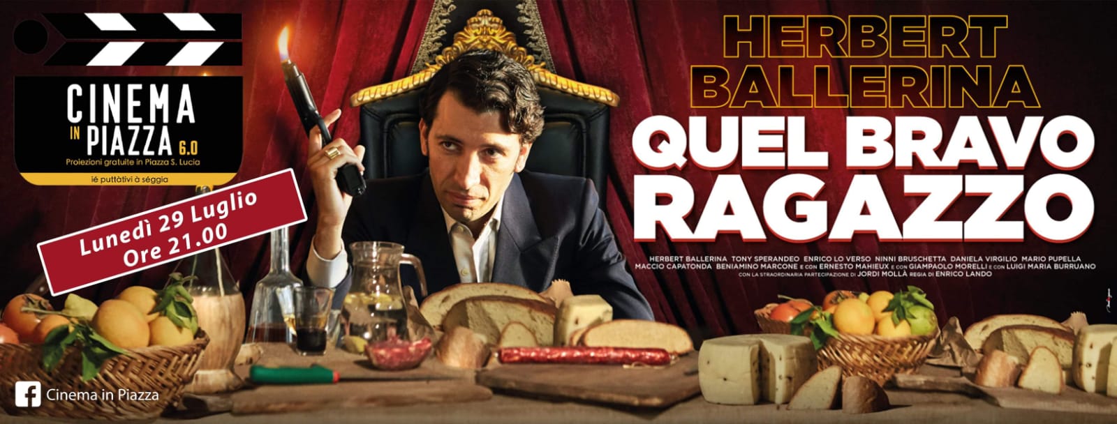 Serata di apertura, Lunedì 29 Luglio con la commedia italiana “Quel bravo ragazzo” che racconta le gesta di Leone, il figlio ingenuo di un boss mafioso che si ritrova a gestire maldestramente gli affari di famiglia, dopo la morte del padre. Una commedia tutta da ridere che punta il dito e sdrammatizza il fenomeno mafioso. La pellicola girata interamente in Sicilia, accompagnerà i fedelissimi del Cinema in Piazza in una serata di allegria e spensieratezza.