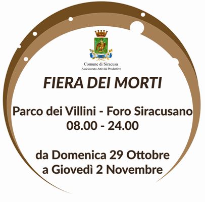 News Siracusa: da domenica 29 ottobre torna la tradizionale “Fiera dei morti”. L’edizione 2017 sarà ospitata nell’area del Foro Siracusano (Villini) con ingresso da via Diaz e da via Foro Siracusano, dalle 8 di domenica 29 ottobre, fino alla mezzanotte di giovedì 2 novembre.