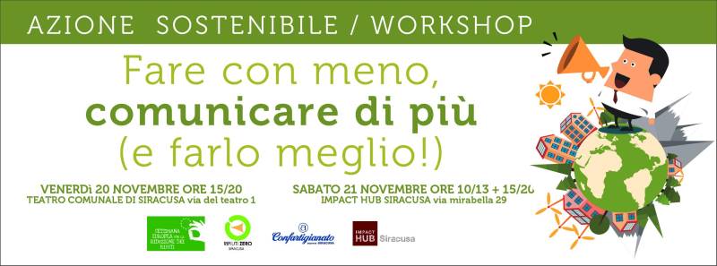 News Siracusa: avrà luogo, venerdì 20, dalle 15 alle 20 presso il Teatro Massimo Comunale di Siracusa e sabato dalle 10 alle 20 presso l’Impact Hub di Siracusa, il primo workshop di Azione Sostenibile.
