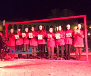 Così, in un pomeriggio di novembre, Simona Princiotta, Silvana Gambuzza, Stefania Zappulla, Stefania Salvo, Cetty Vinci, Carmen Castelluccio, Sonia D’Amico, Cristina Garozzo e Chiara Catera hanno indossato una maglia rossa, una maschera bianca sporca di colore rosso e impugnato dei lumini per opporsi al femminicidio.