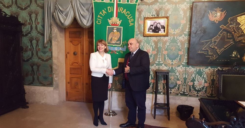 Alla fine della visita, il sindaco ha donato la pubblicazione di rappresentanza dedicata a Siracusa.