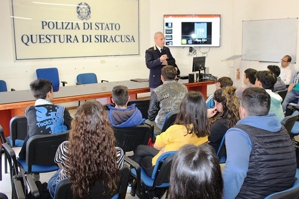 Siracusa. Questa mattina una rappresentanza di alunni del Liceo Einaudi, ha fatto visita alla Questura per una lezione sulla legalità.