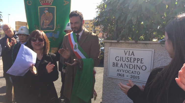 Siracusa. Inaugurata stamattina la via Giuseppe Brandino dedicata all’avvocato già presidente della Camera penale di Siracusa morto prematuramente nell’aprile del 2015 a soli 47 anni. La lapide toponomastica, situata a pochi passi da piazza della Provincia e dal campo di calcio di via Pachino, è stata scoperta dal vice sindaco, Francesco Italia, dalla moglie del professionista, Paola Lappostato, e dai figli Elena, Sara e Antonino.