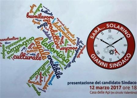 News Solarino: sarà ufficializzata domenica 12 marzo, alle 18, la candidatura a sindaco di Michele Gianni. Nella Casa delle Api (ex circolo Valentino) il consigliere comunale in carica presenterà la lista civica Sarà… Solarino con cui concorrerà alle prossime elezioni amministrative e la squadra che lo sosterrà durante la campagna elettorale.