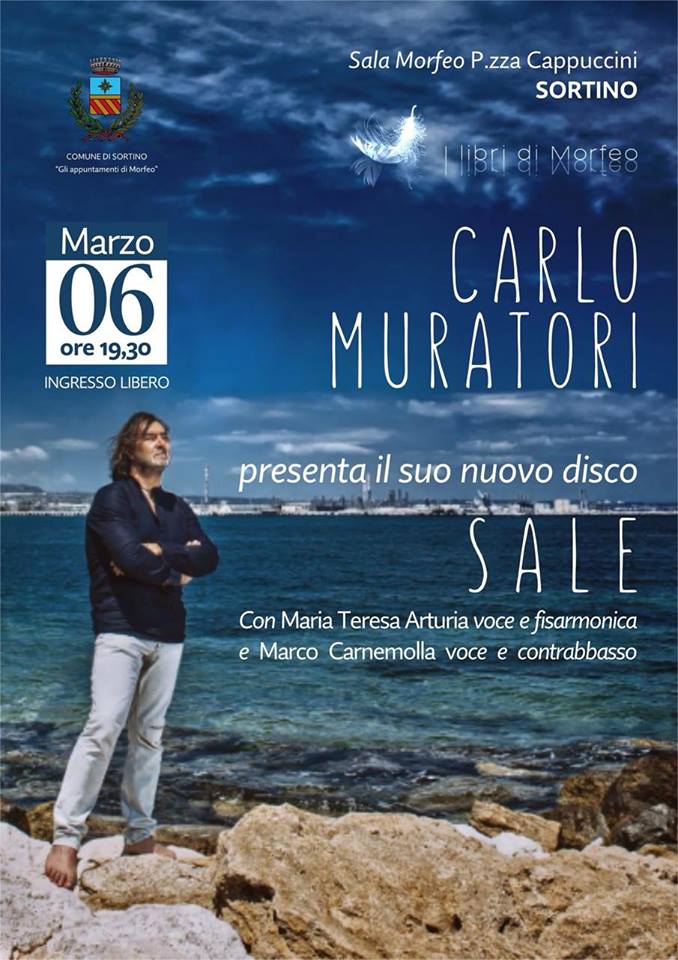 News Sortino: l’Associazione Culturale “I libri di Morfeo”, con il patrocinio del Comune di Sortino, inizia la propria attività 2016 con la presentazione di “Sale”, l’ultimo disco del cantautore siracusano Carlo Muratori.
