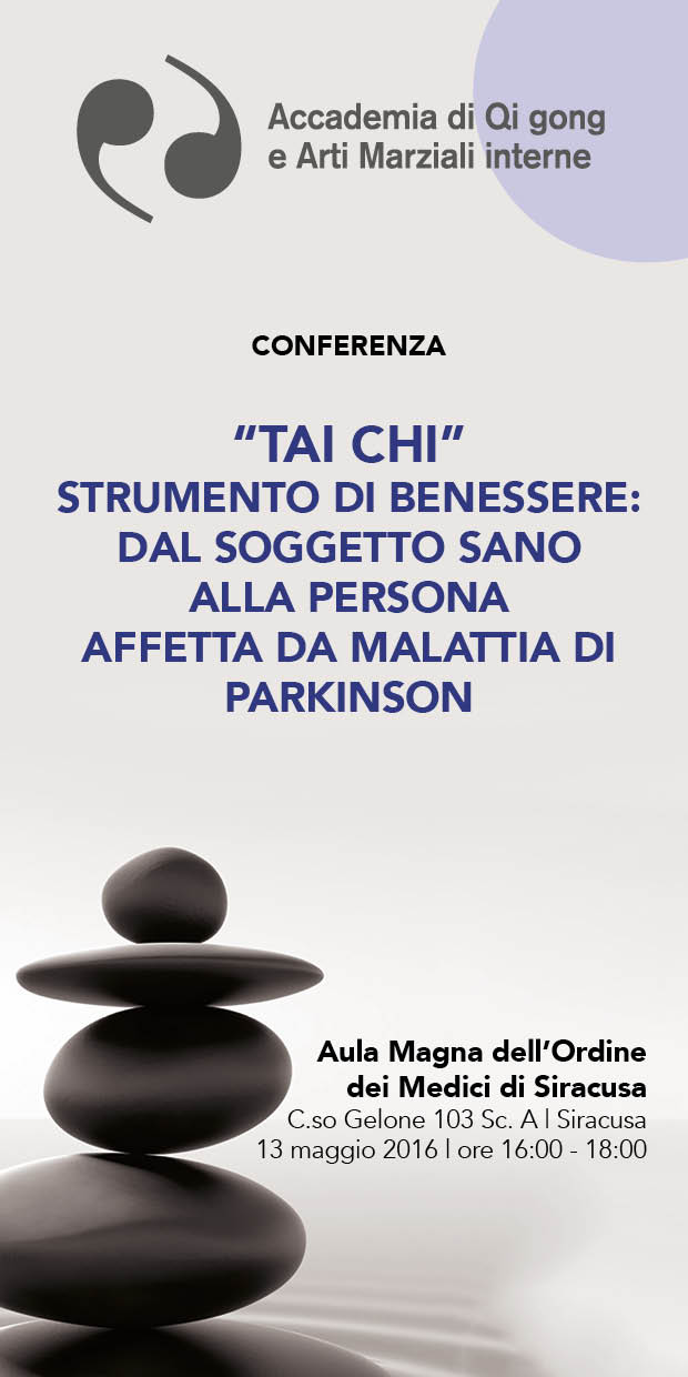 News Siracusa. Un neurologo ed un sociologo della salute a confronto sui benefici delle discipline orientali, in particolare sul Tai Chi. L’appuntamento è per venerdì prossimo, 13 maggio, nell’aula magna dell’Ordine dei medici di Siracusa, in Corso Gelone 103, dalle 16.00 alle 18.00 con una conferenza scientifica sul tema “TAI CHI STRUMENTO DI BENESSERE: DAL SOGGETTO SANO ALLA PERSONA AFFETTA DA MALATTIA DI PARKINSON”.