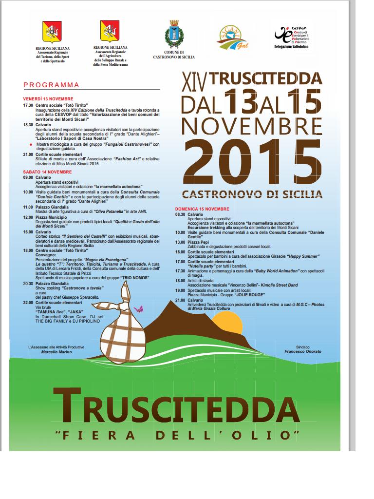 News Castronovo di Sicilia (PA): entrerà nel vivo oggi, la XIV edizione della Sagra della Truscitedda-Fiera dell’olio a Castronovo di Sicilia, in provincia di Palermo e che terminerà domani, 15 novembre.