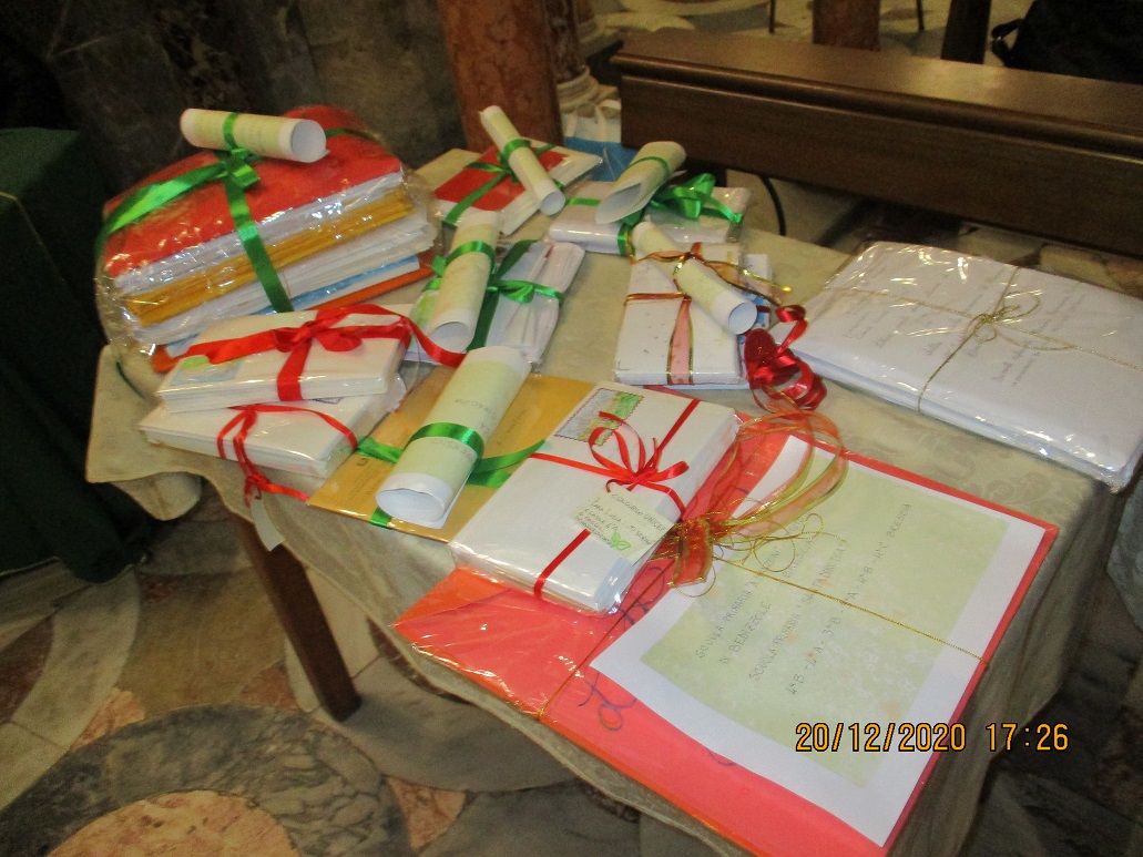 Erano presenti alla cerimonia: il Parroco della Cattedrale Mons. Tito Marino, il Referente Kàiros, Salvatore Sparatore che collabora ed è coinvolto attivamente nel Progetto e la Referente Provinciale UNICEF-Scuola di Siracusa, Angelica Romano, la quale ha sottolineato l’atmosfera surreale che la pandemia ha determinato in città ed in Cattedrale anche durante l’importante Festa di Santa Lucia, Patrona di Siracusa; ma sono le letterine dei Bambini rivolte a Lucia a far ritornare il sorriso, la fiducia, la speranza e, soprattutto, il desiderio di vivere i valori più semplici con le loro genuine e spontanee riflessioni.”
