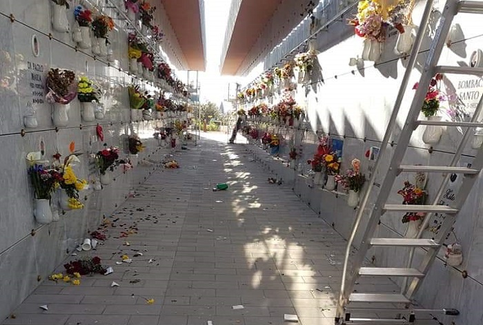 Uno scenario macabro quello che si è presentato stamattina nel luogo in cui i defunti avrebbero diritto di riposare in pace. Oscenità e vergogna per un atto ignobile e oltretutto da punire.