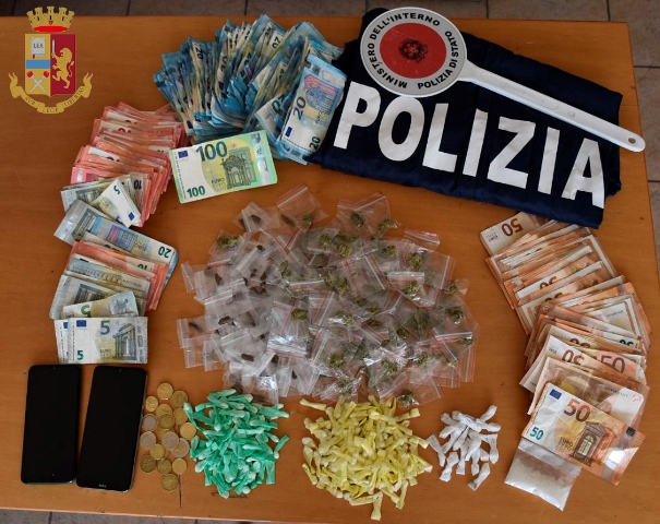 Gli investigatori riuscivano a recuperare e sequestrare, nel complesso, 215 dosi di cocaina per oltre 72 grammi, 87 dosi di hashish (per grammi 54) e 76 dosi di marijuana (per 37 grammi) oltre a circa 4900 euro in contanti e vario materiale utile per il confezionamento dello stupefacente.