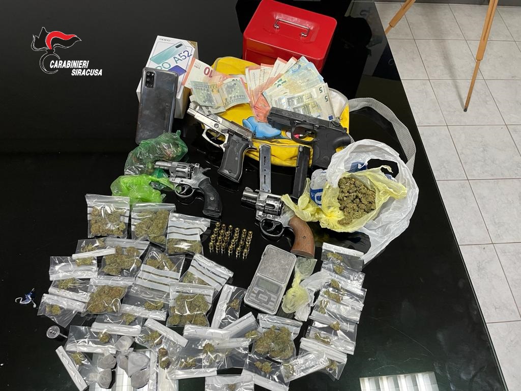 Al termine delle operazioni i 4 soggetti sono stati tratti in arresto per detenzione in concorso di armi clandestine e di sostanze stupefacenti: mentre i tre complici (G.F. cl. 1993, V.C. cl. 1962 e Q.G. cl. 1988) sono stati tradotti presso le loro abitazioni, ove sono stati sottoposti agli arresti domiciliari, A. è stato tradotto presso la Casa Circondariale Cavadonna di Siracusa.